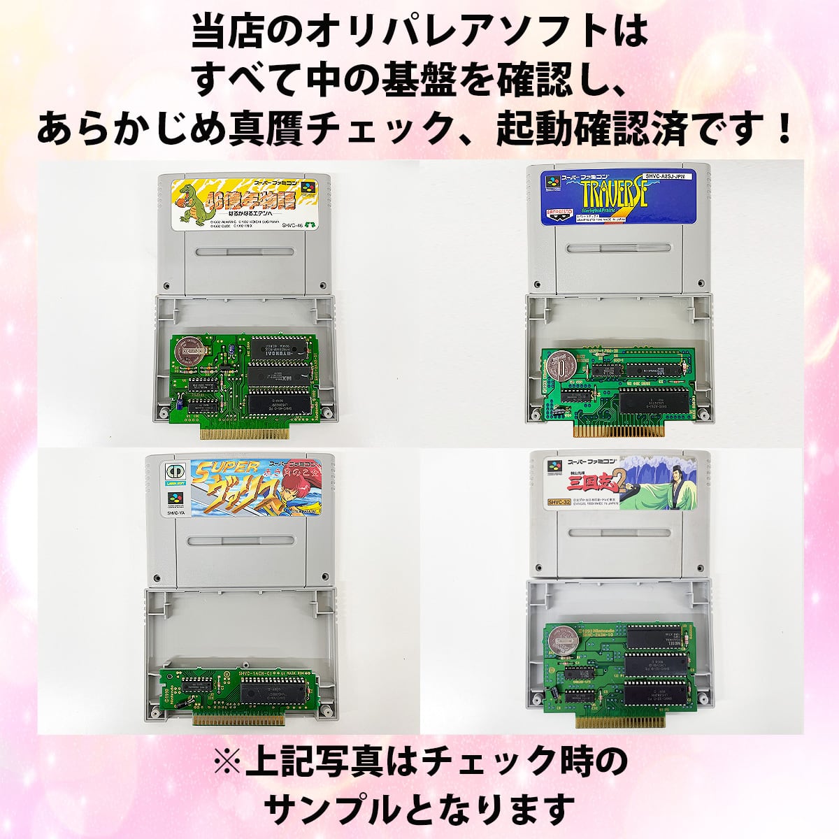 ※ソフトの動作確認はすべて任天堂スーパーファミコン本体にて確認をしております。